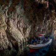 Monk Seal Cave- Our second destination is also situated on the island Biševo. Monk Seal Cave is the longest cave on the island, 160 meters long and it was the home of the Mediterranean monk seal. We will enter the cave with our speedboat and do a sightseeing inside the cave.