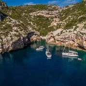 Stiniva Bay- our forth destination is a bay with an unusual shape located on Island Vis. The beach was declared the most beautiful beach for 2016 by European Best Destinations portal.We will enter the bay as close as we can with our speedboat for sightseeing and if the weather conditions are appropriate and safe, in agreement with the skipper we might have some short time for swimming. We will also take panoramic sightseeing close to small and amazing cliffs on the south side of Vis. We could even see domestic animals ( lamb, sheep...) walking on the cliffs.