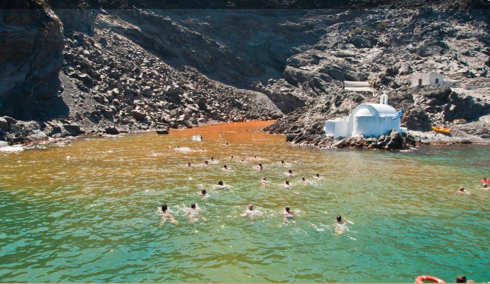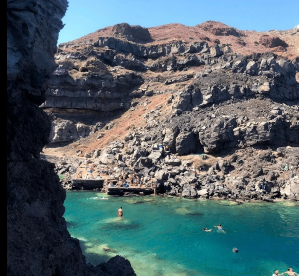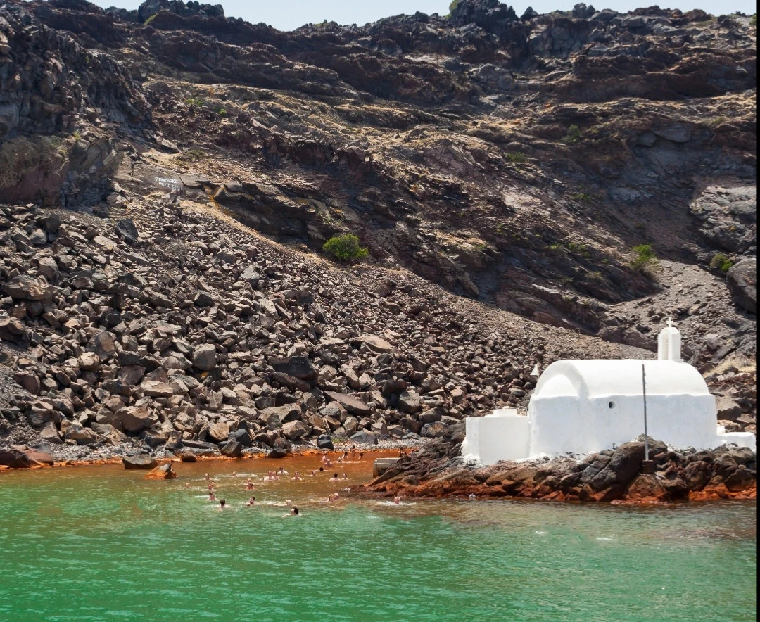 Setting sail from Vlychada Marina and cruising along the coastline, we arrive at Akrotiri’s Red Beach, admired for its distinct red hue, caused by the rich in volcanic minerals soil. Next, we sail towards the White Beach. Then we sail towards Mesa Pigadia for a swim break. Snorkeling gear and towels are provided to all our guests. Later, we pass the Lighthouse and enter the Caldera for a unique view of the whole bay. Our sailing route includes a close sail by the volcano crater and a full view of it. Our next stop is at the Hot Springs. This is where our second swim break takes place in the sulfurous waters that provide a natural spa. With the breathtaking views of Thirassia Island as a backdrop matching the picturesque Village of Oia, your Santorini Sailing experience shall culminate in the most unique and unforgettable way possible.