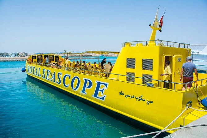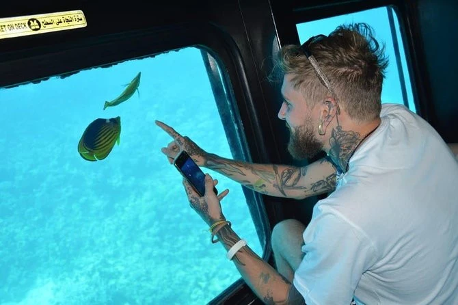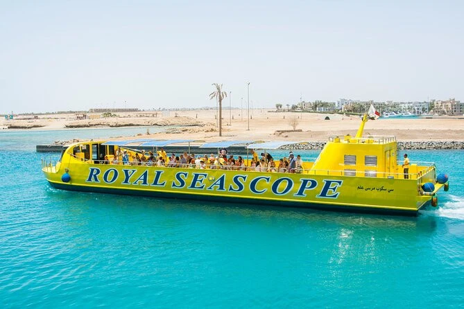 Discover the underwater wonders of the Red Sea on this cruise from Hurghada. Set sail on-board a semi-submarine with panoramic windows affording spectacular underwater views as you cruise along the coast. Then, dive in to swim and snorkel among vibrant corals, follow your guide along the reef, and look out for exotic fish and marine life. Fantastic underwater views from a semi-submarine Guided snorkelling excursion in the Red Sea Choice of departure times available throughout the day Hassle-free pickup and drop-off from your Hurghada hotel