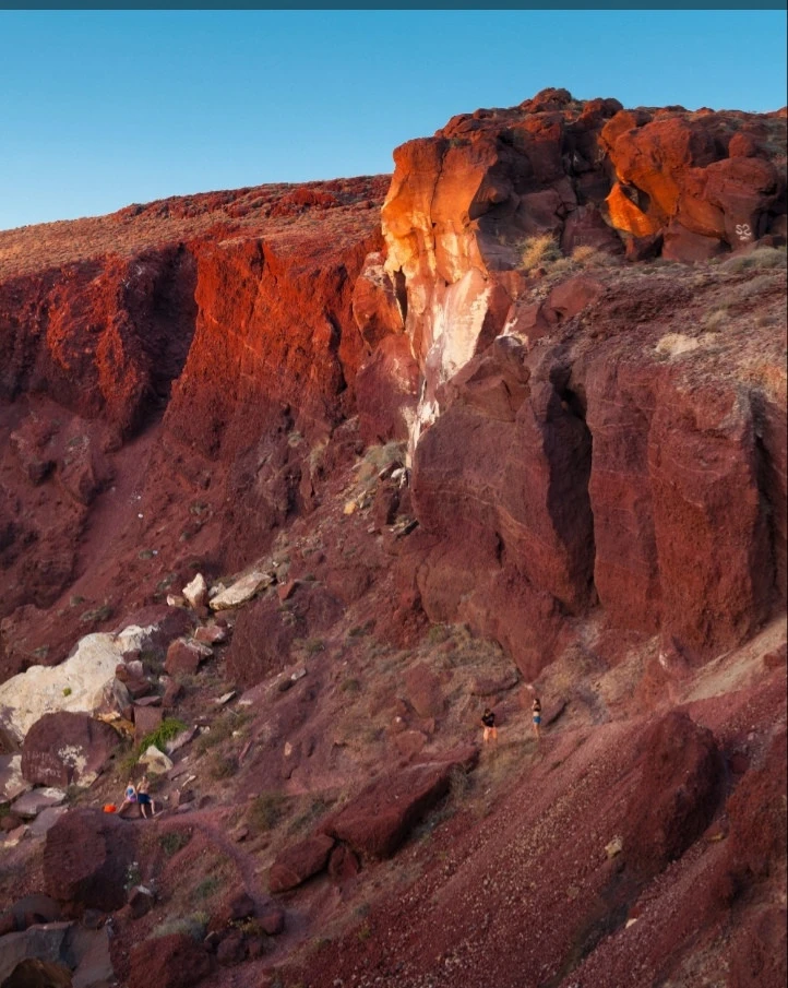 Setting sail from Vlychada Marina and cruising along the coastline, we arrive at Akrotiri’s Red Beach, admired for its distinct red hue, caused by the rich in volcanic minerals soil. Next, we sail towards the White Beach. Then we sail towards Mesa Pigadia for a swim break. Snorkeling gear and towels are provided to all our guests. Later, we pass the Lighthouse and enter the Caldera for a unique view of the whole bay. Our sailing route includes a close sail by the volcano crater and a full view of it. Our next stop is at the Hot Springs. This is where our second swim break takes place in the sulfurous waters that provide a natural spa. With the breathtaking views of Thirassia Island as a backdrop matching the picturesque Village of Oia, your Santorini Sailing experience shall culminate in the most unique and unforgettable way possible.